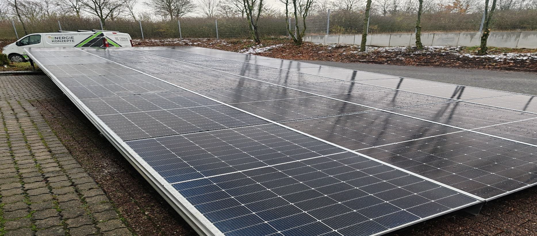 Die mobile Photovoltaikanlage mit 30 Modulen und einer Leistung von 13 kWp (bei 460 Wp je Modul) ist auf einer gedämpften 750kg Achse aufgebaut.